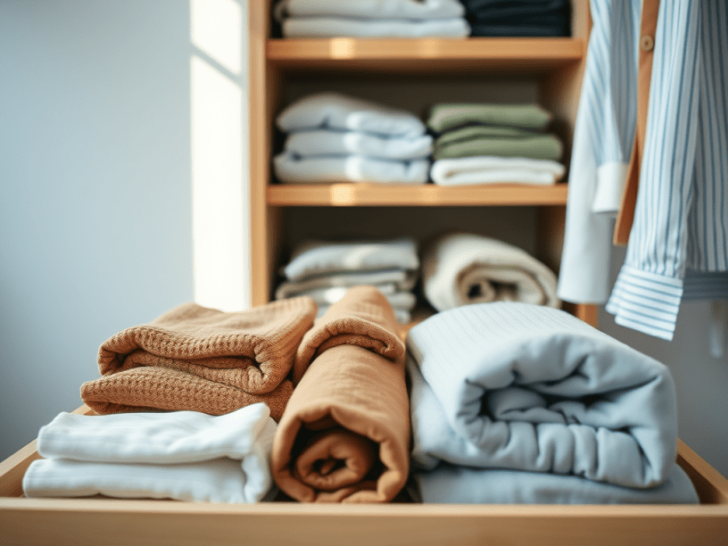 Folding and storing clothes using minimalist techniques can dramatically enhance the efficiency and organization of your wardrobe. By embracing methods like the KonMari folding technique, rolling clothes, using drawer dividers, and adopting a capsule wardrobe approach, you can create a tidy, functional space that makes managing your clothing a breeze. Additionally, optimizing closet space with adjustable shelving and smart seasonal storage will help you maintain an organized, clutter-free environment. Regularly decluttering and evaluating your wardrobe ensures that you stay on top of organization and continue to enjoy a simplified, efficient approach to clothing management.